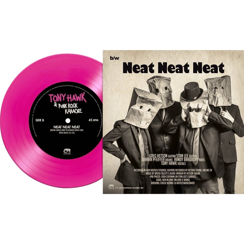 Skateboard legend Tony Hawk makes his frontman debut on this snarling 7", backed by the notorious punk rock supergroup, Punk Rock Karaoke, featuring Darrin Pfeiffer (Goldfinger), Greg Hetson (Circle Jerks et al.), Randy Bradbury (Pennywise), and Stan Lee (The Dickies), who help Hawk belt out two classics - The Jam’s “In The City” and The Damned’s “Neat Neat Neat!"