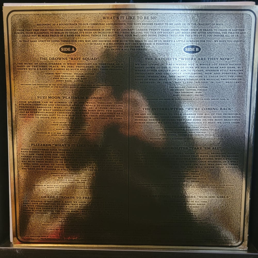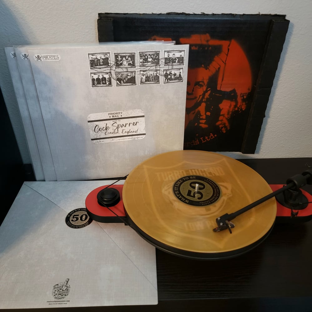 Cock Sparrer turned 50 in 2022, and Pirate's Press Records decided to surprise them with a a proper tribute record. The presentation of this record is nothing short of impressive; the gold jacket housed in an envelope sealed by a hype sticker, and within you will find the limited to 1500 gold nugget vinyl.